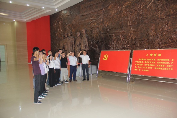 藕塘為抗日戰爭時期津浦路西革命根據地中心,素有“小莫斯科”之譽稱,是我省首批愛國主義教育基地。在莊嚴肅穆的烈士陵園,全體人員首先在講解員的帶領下依次參觀了藕塘紀念館的各個展區,觀看珍貴的文物、文獻、照片等資料,回顧黨的光輝歷程,追尋英雄足跡,緬懷先烈事跡,再次被劉少奇、葉挺、羅炳輝等老一輩無產階級革命家的壯烈事跡所感動。隨后來到紀念館大廳前,全體黨員面對鮮紅的黨旗,重溫入黨誓詞,進一步牢固“不忘初心、牢記使命”的政治信念。